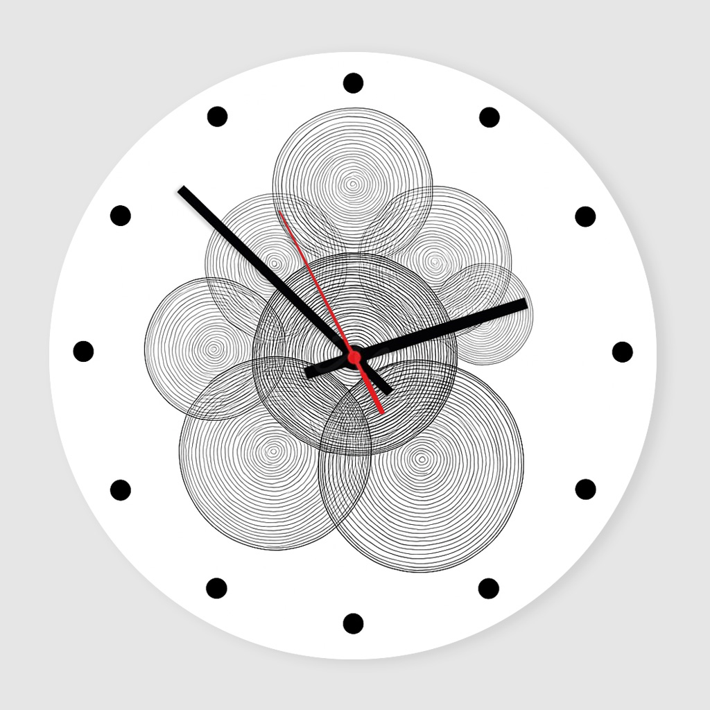 The Art Circles Wall Clock is a perfect choice for those who appreciate a combination of modern form and graphic originality. The clock face is made of high-quality white acrylic glass and features a unique pattern of concentric circles that catch the eye and create a sense of depth. Minimalist indices in the form of black dots and simple hands emphasize the geometric aesthetic of this model.