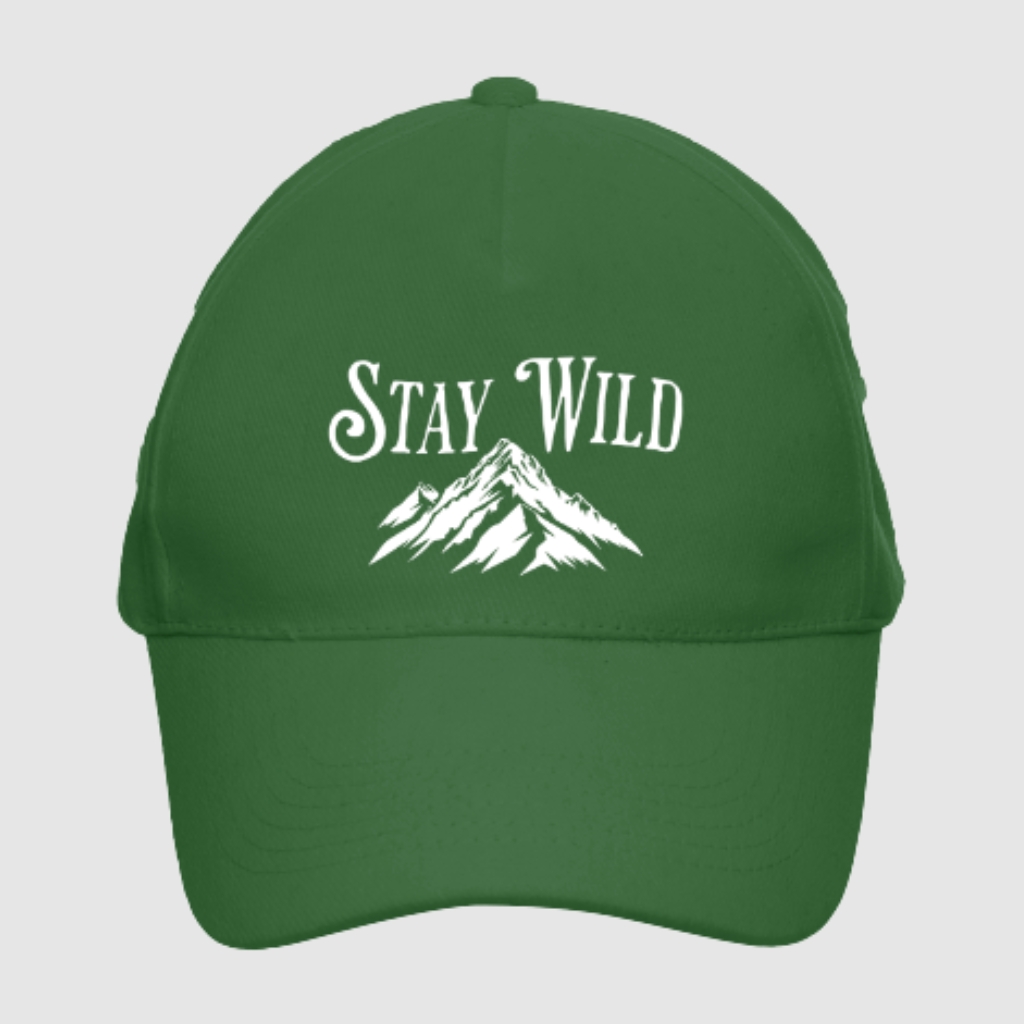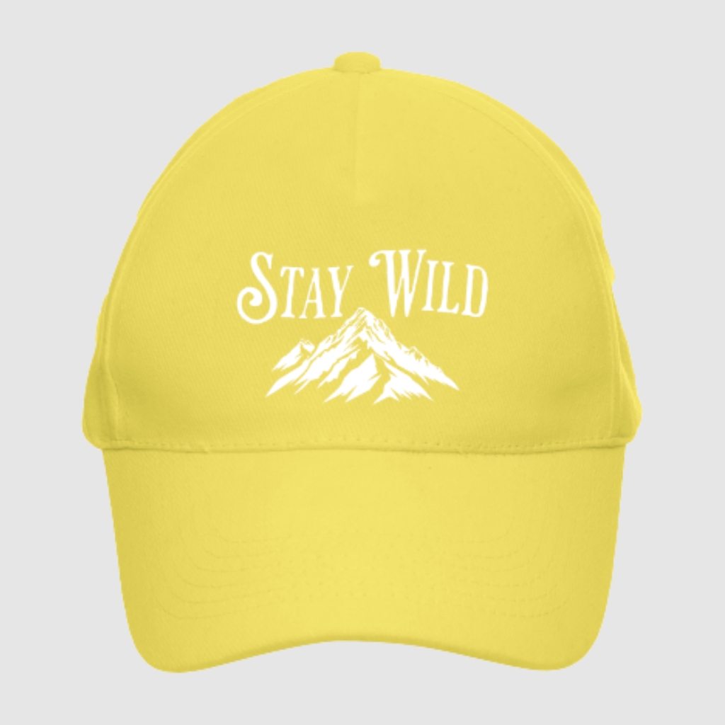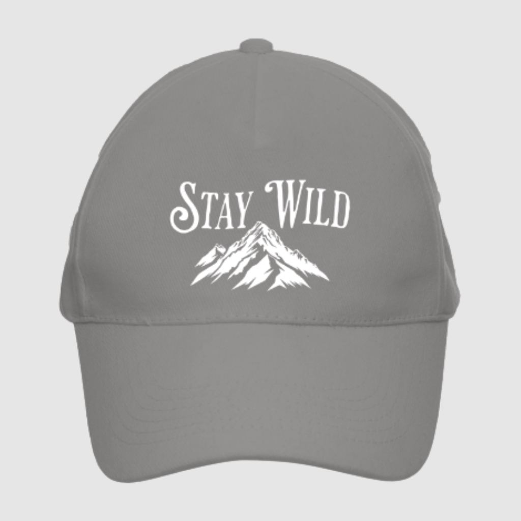 The “Stay Wild” baseball cap is a classic design inspired by nature and freedom. A mountain graphic combined with a bold slogan gives it a distinct outdoor character, making it perfect for both urban outfits and active getaways.