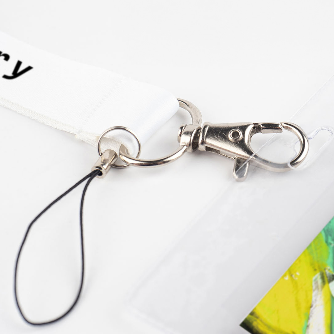 Promotional lanyard with print, elegant and durable, made from satin tape available in various widths, with optional accessories.