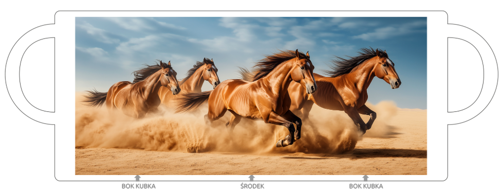 Kubek z grafiką galopujących koni to idealny wybór dla miłośników natury, zwierząt i dynamicznych motywów. Doskonale sprawdzi się jako prezent lub jako inspirujący element Twojego dnia.