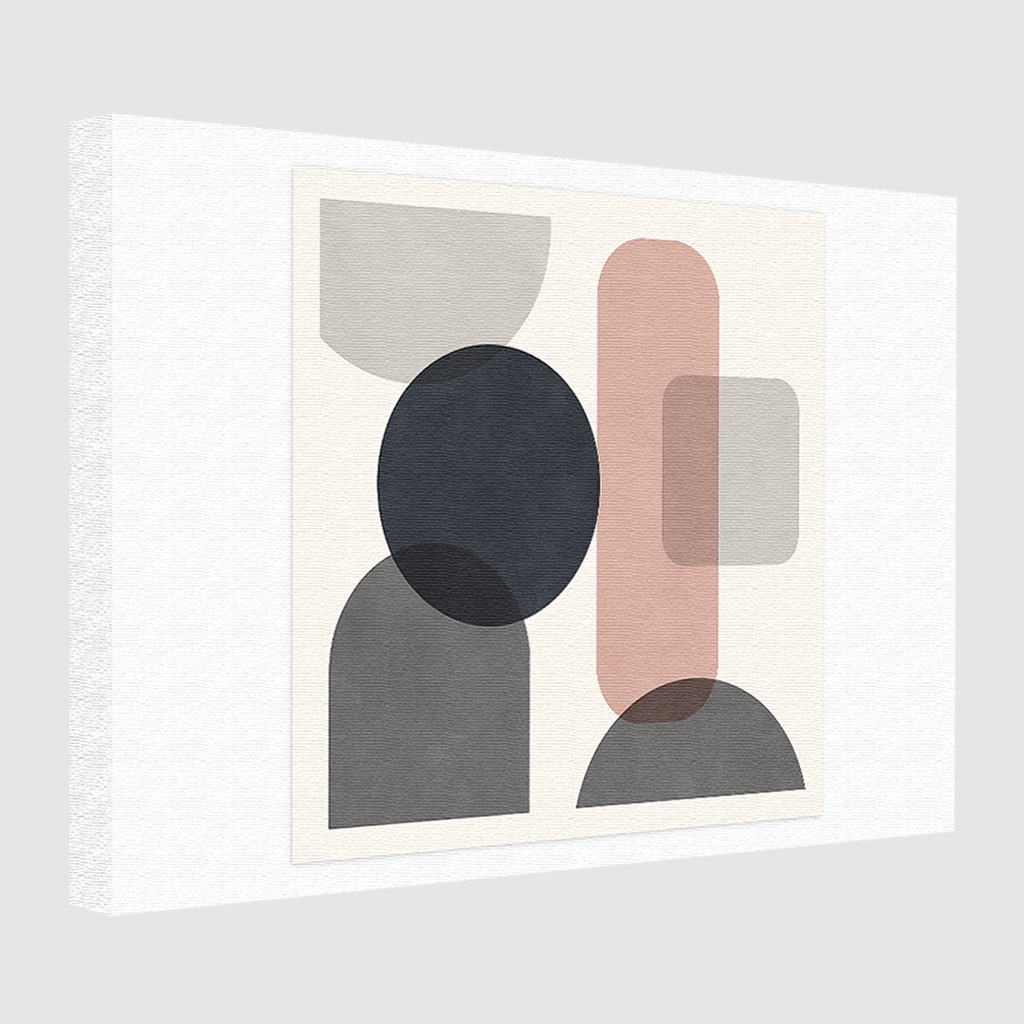 Obraz na płótnie z kompozycją geometrycznych kształtów w stonowanej, nowoczesnej kolorystyce.