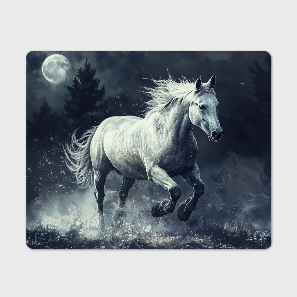 Przenieś na swoje biurko niezwykły klimat natury i siły, który emanuje z grafiki białego konia w pełnym galopie na tle nocnego krajobrazu. Ta podkładka pod mysz o wymiarach 18 × 22 cm to idealne połączenie funkcjonalności i wyjątkowego designu.