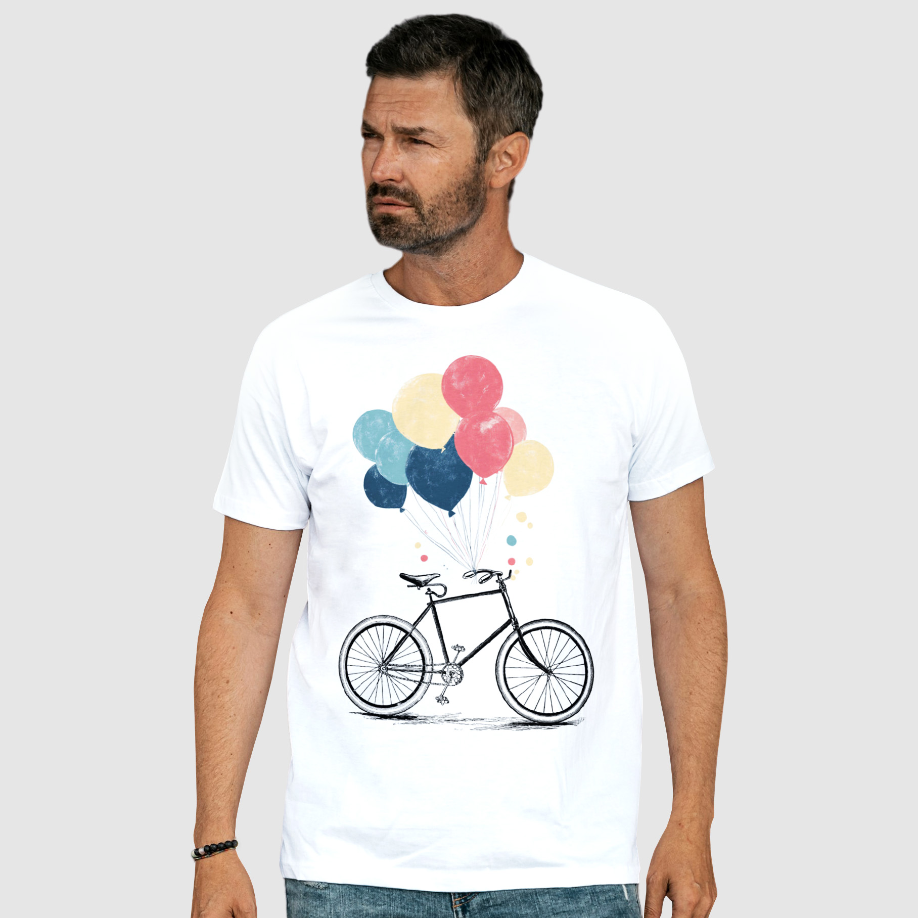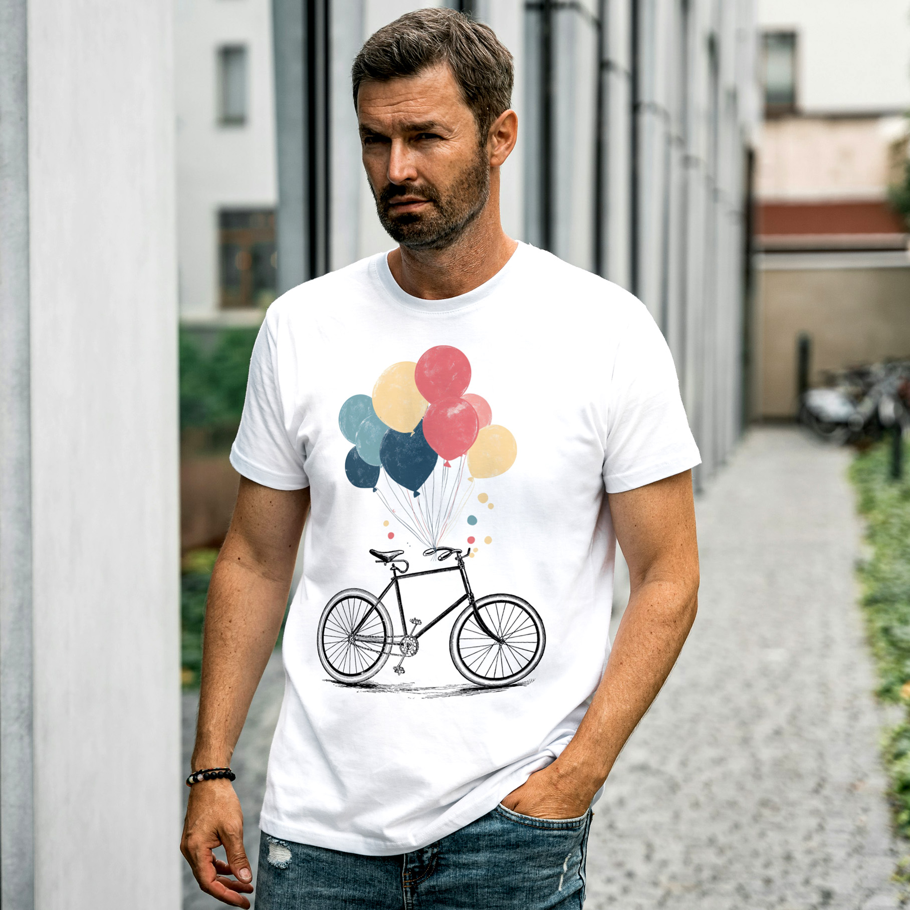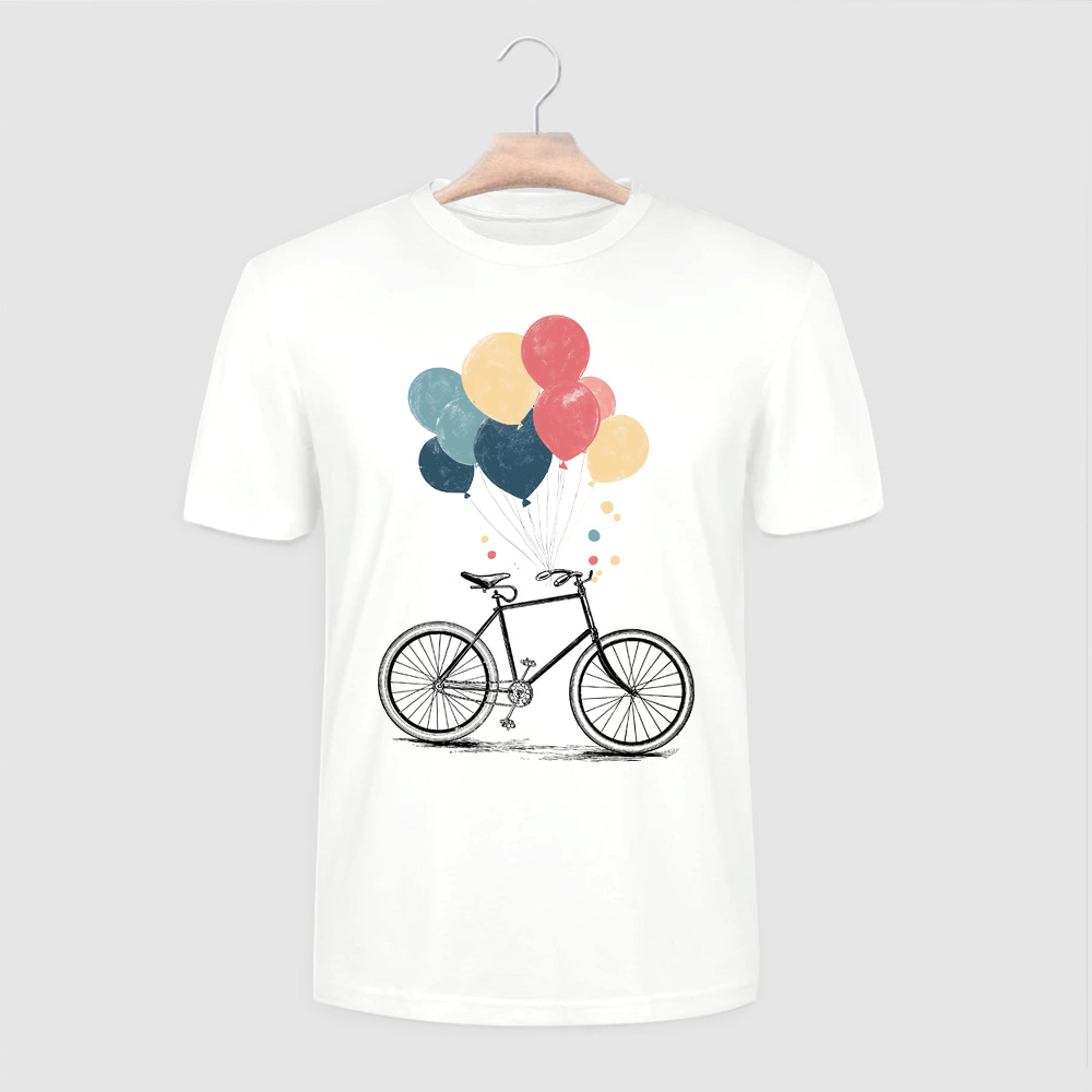 - Nadruk: Wizerunek roweru z unoszącymi się balonikami został stworzony z dużą dbałością o szczegóły. Nadruk odzwierciedla lekkość, radość i swobodę, które rower i baloniki symbolizują.