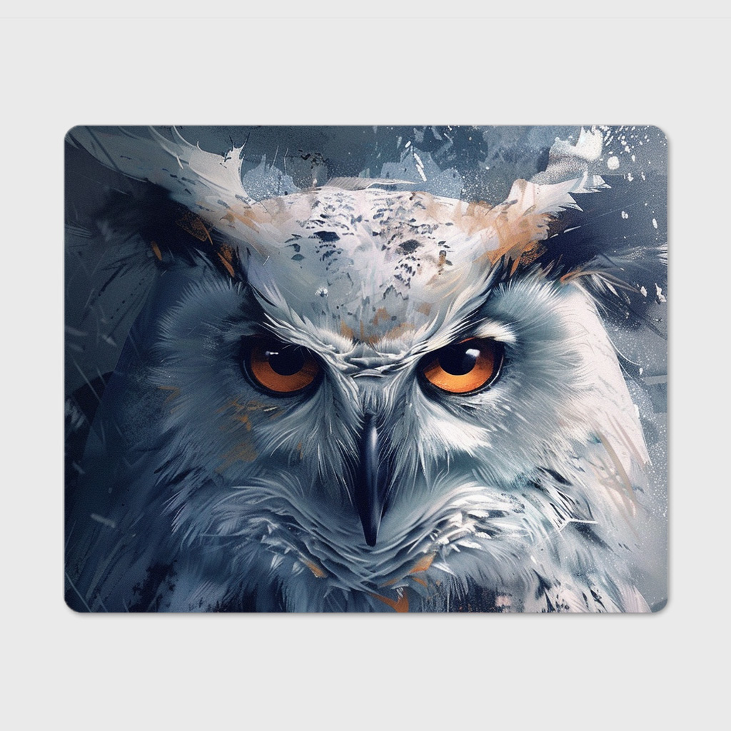 Dodaj swojemu stanowisku pracy wyjątkowego charakteru dzięki podkładce pod mysz z grafiką majestatycznej sowy. Intensywne pomarańczowe oczy oraz subtelne detale upierzenia wprowadzą atmosferę elegancji i tajemniczości, doskonale podkreślając styl Twojej przestrzeni.