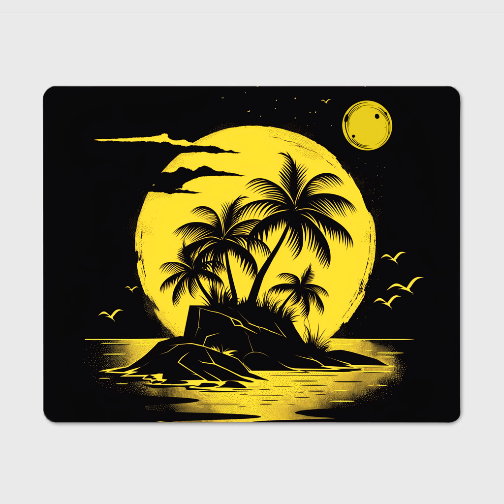 Przenieś na swoje biurko egzotyczny nastrój dzięki podkładce pod mysz z grafiką wyspy oświetlonej blaskiem księżyca. Subtelne palmy, spokojne fale i żółto-czarna kolorystyka tworzą niezwykły kontrast, który dodaje elegancji i oryginalności każdej przestrzeni.